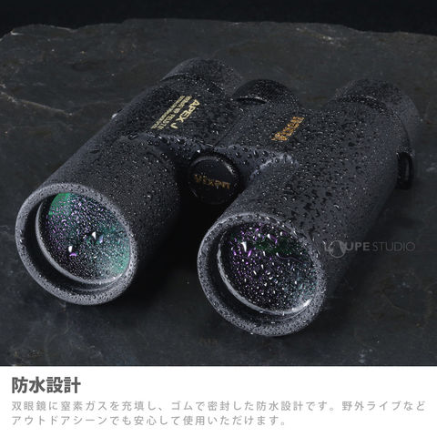 大口径42mm、高めの倍率で迫力あるシーンを楽しめる倍率10倍の双眼鏡です。EDレンズ採用により、色にじみのないスッキリした見え味を実現!防水設計なので野外ライブ・コンサートも安心です。
