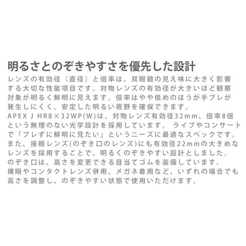ビクセン VIXEN 双眼鏡 8倍 APEX J HR8×32WP[W] コンサート ライブ オペラグラス ライブ 防水 観劇に最適 日本製 EDレンズ採用スペック