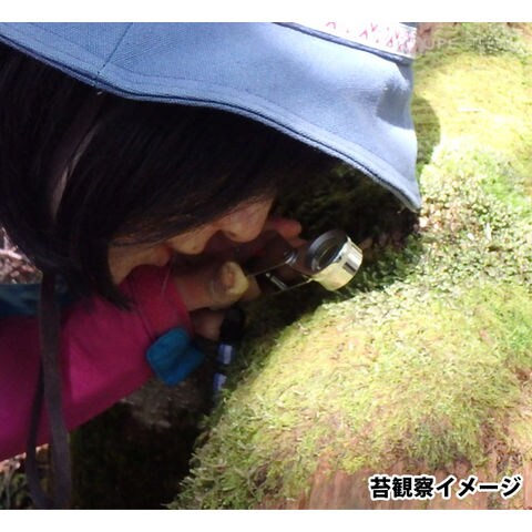 見口が広く小さくて携帯性の良いメタルホルダールーペはコケの世界を散策するのに適度な10倍。 付属のストラップをつければ、アクセサリーの様に首からさげて携帯できて、 気になるコケに出会ったときに、すぐに観察可能です。 見口が広いので、スマホのカメラとの相性もよく、ミクロの世界を拡大撮影することも出来ます。「ルーペ」は、コンパクトで携帯性の優れるメタルホルダールーペ。倍率は、苔の細部まで観察できる 10 倍を採用しています。また、ルーペとスマートフォンのカメラを使用すれば、苔の世界を拡大撮影することも可能です。セットのルーペは広い??を採用しており、スマートフォンのカメラとの相性に優れています。付属の「リボンストラップ」をつければ、アクセサリーの様に首からさげて携帯できるので、苔を?つけたらすぐに観察できます。