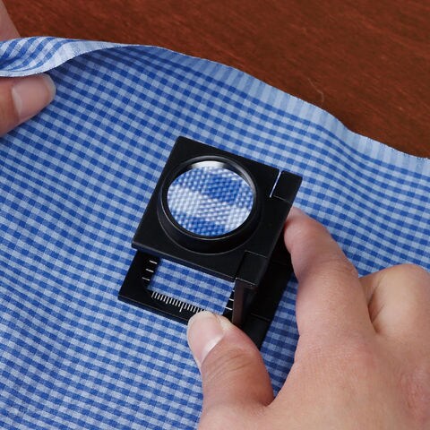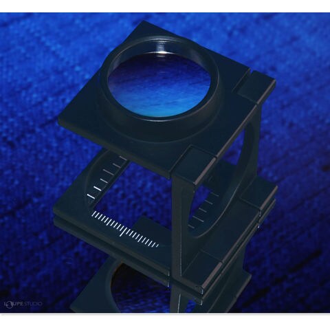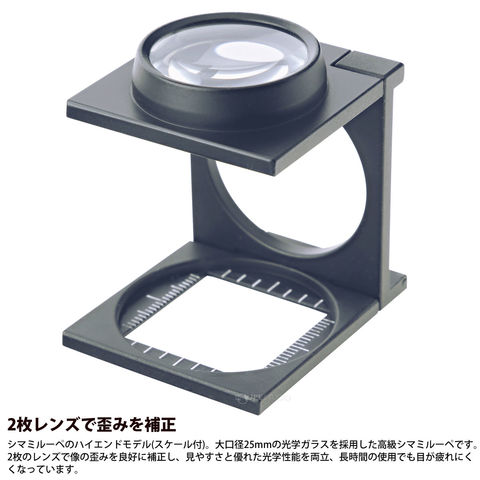 シマミルーペのハイエンドモデル(スケール付)です。シマミ(縞見)ルーペとは繊維織物の糸数の測定するためのルーペです。布地チェックのほか、印刷の仕上げなど多用途に役立ちます。
