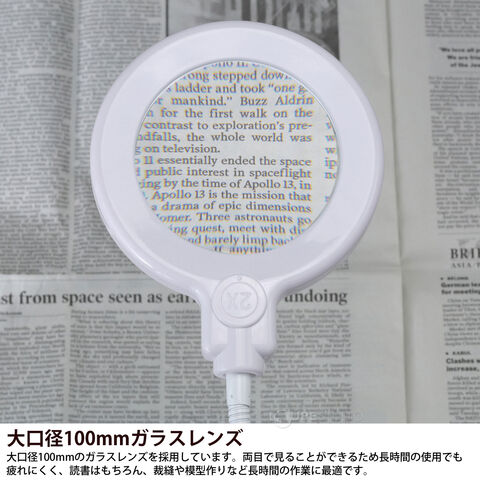 両手を自由に使えるスタンド型ルーペ(LED照明付)。見やすい大口径100mmレンズ