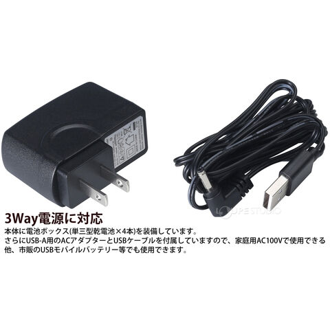 | 電源 | AC100V、USB電源、単三型乾電池×4本(電池別売) |