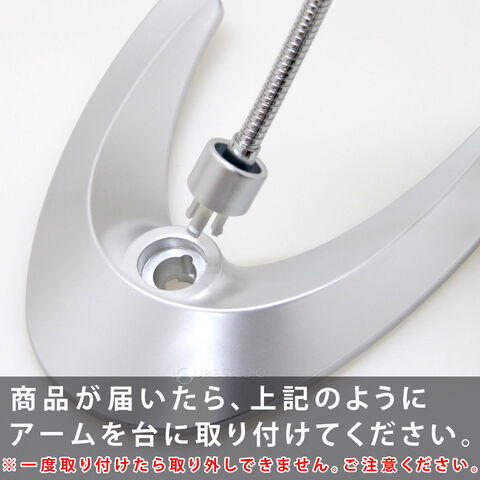 商品が届いたら、上記のようにアームを台に取り付けてください。