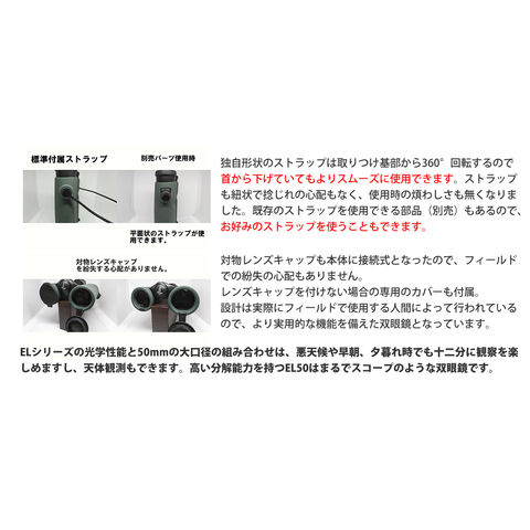 | 標準付属品 | ストラップ、フィールドバッグ、対物キャップ、アイピースキャップ、レンズクロス |