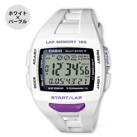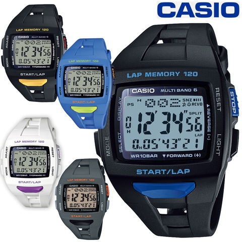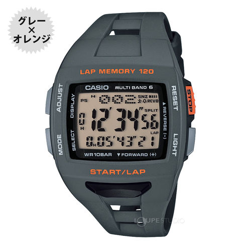 ソーラー電波機能を搭載した「 CASIO Collection」のスポーツモデルです。電波受信機能は世界6局の標準電波に対応したマルチバンド6を搭載。ラップ・スプリットタイムを最大120本までメモリー可能。また、タイム計測中に計測時間と現在時刻を同時に表示することもできます。大型ワイド液晶パネルや高輝度均一発光LEDの採用により、日中はもとより夜間での視認性も確保。走行中でも操作しやすいフロントの大型LAPボタンなど、ランナーのニーズにマッチしたモデルです。