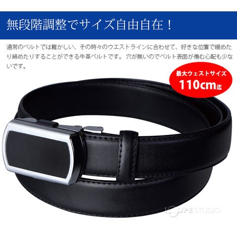 - 好きな位置で調整できる穴のない無段階調整ベルトを採用。(牛革、ウエスト110cmまで対応可能)