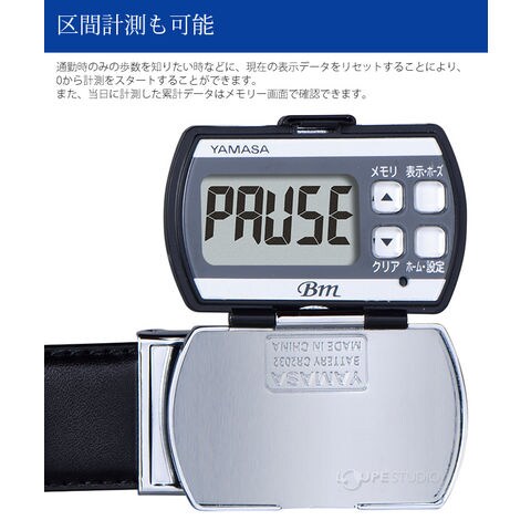 万歩計 歩数計 無段階調整 牛革 ベルト バックル BM-950 ブラック 山佐 ヤマサ メンズ 120cm 幅30mm 消費カロリー エクササイズ おすすめスペック