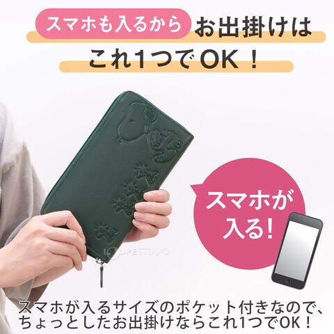 スヌーピー 長財布 スマホが入る 本牛革 多機能財布 スマホ収納 SNP003 カード36枚 ウォレット 型押し カード入れ 小銭入れ クリスマスプレゼント クリスマススペック