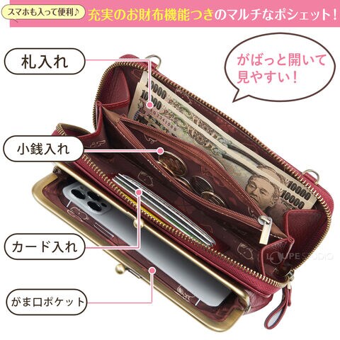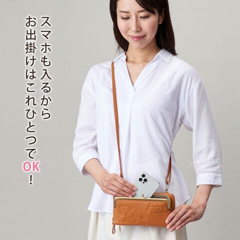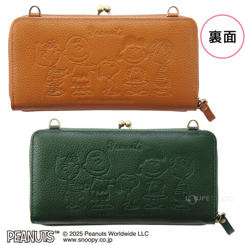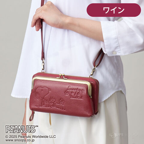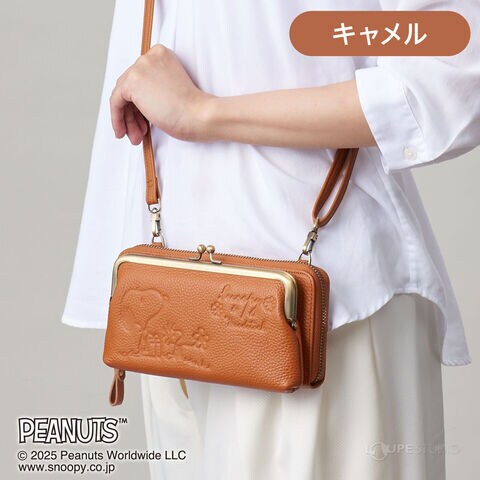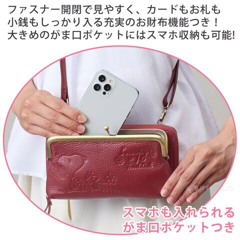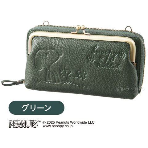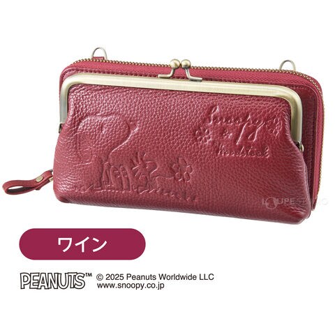 スヌーピー スマホも入る 本牛革 がま口ポシェット SNP009 スマホ 財布 カード 札入れ 小銭入れ ファスナー ショルダー ストラップ付き クリスマスプレゼント クリスマススペック