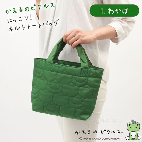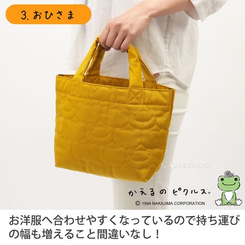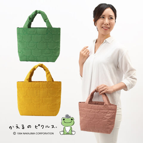 かえるのピクルス トートバッグ キルティング加工 キルト トート バッグ 軽量 大容量 通勤 通学 可愛い