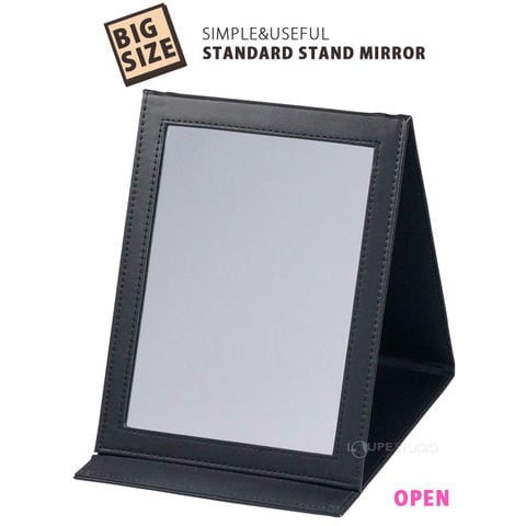 BIG折立ミラー フェイクレザー ブラック スタンドミラー 鏡 卓上ミラー