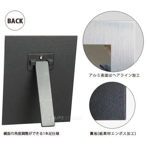 ヘアライン加工が冴える、アルミ素材のベーシックな卓上鏡です。