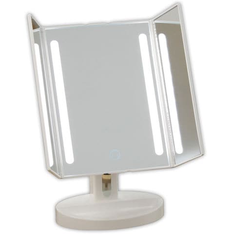 LEDライト三面 メイクアップミラー ホワイト 三面鏡タイプ 電池 USB 鏡 ミラー メイクミラー ライト付き led おすすめ 人気スペック