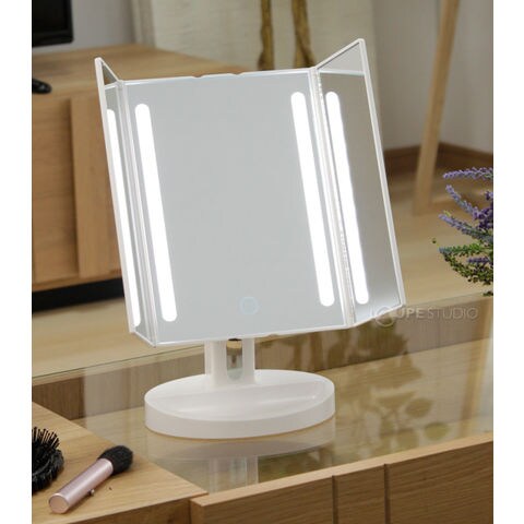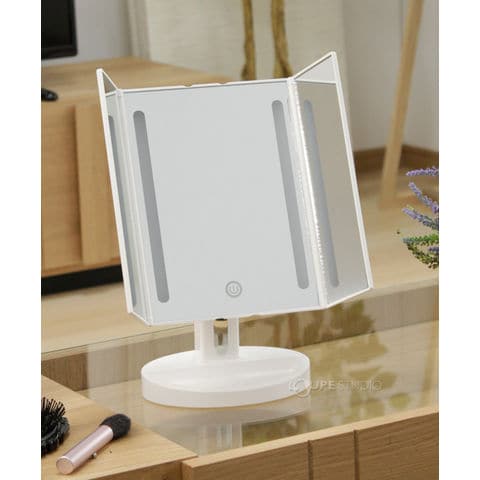 LEDライト三面 メイクアップミラー ホワイト 三面鏡タイプ 電池 USB 鏡 ミラー メイクミラー ライト付き led おすすめ 人気