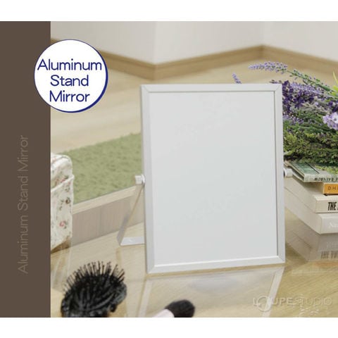 アルミスタンドミラー シルバー 鏡 ミラー 卓上 スタンドミラー メイクミラー おしゃれ 人気
