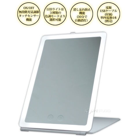スタンドミラー 卓上 LEDライト タッチセンサー機能 コンパクトミラー コンパクト YBM-1926 ヤマムラ メイク 鏡 折りたたみ 照明付き おしゃれスペック
