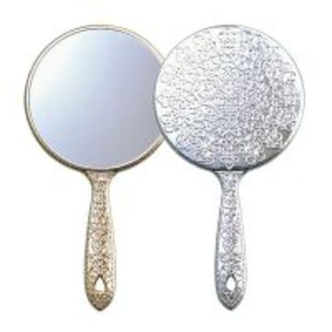 アンティークな装飾柄は手鏡の定番。大人気の姫系ハンドミラーの小さめサイズです。重くないのも嬉しいメッキハンドミラー。2007/8/22放送の世界バリバリバリューで紹介されたアーティスト トシヤさんが創られている芸能人に大人気の『楽屋ミラー』にもこの鏡が使用されています!