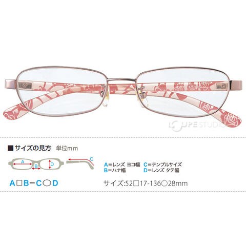 | 仕様 | ピンク メタル(花柄転写プリント)、非球面プラスチックレンズ |