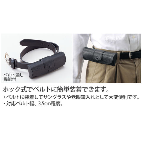ホック式でベルトに簡単に装着できます。対応ベルト幅3.5cm程度