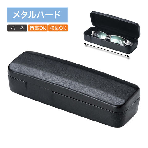 メガネケース メタルハード バネ式 眼鏡ケース めがね おしゃれ レディース メンズ サングラス 老眼鏡 ブラック 持ち運び 智高OK 横長 プレゼント クリスマスプレゼント クリスマススペック