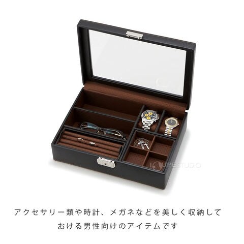• アクセサリー類や時計、メガネなどを美しく収納しておける男性向けのアイテムです