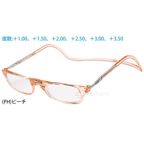 老眼鏡 クリックリーダー 度数1.0?3.5 レギュラータイプ ピーチ キャラメル メガネ シニアグラス 近視 首掛け 女性 プレゼント ギフト おしゃれスペック