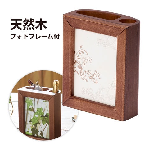 ペンスタンド フォトフレーム付 ウォールナット 収納 ケース メガネ 小物 おしゃれ 卓上 アンティーク ディスプレイ 雑貨 プレゼント ギフト 木製 クリスマスプレゼント クリスマス