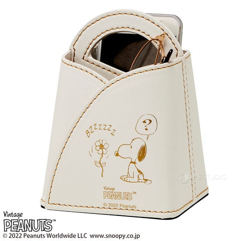 スヌーピー フラワーメガネ スマホ 小物入れ 収納 ケース おしゃれ 卓上 アンティーク ディスプレイ 雑貨 プレゼント ギフト 白 ピンク 合皮 クリスマスプレゼント クリスマス