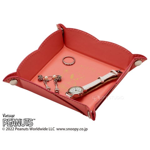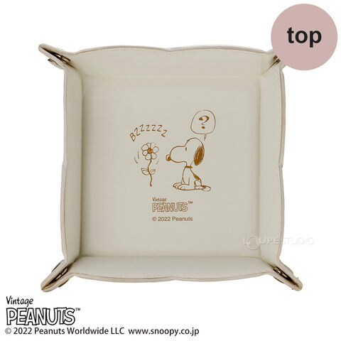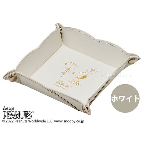 スヌーピー フラワートレー 収納 ケース 小物 アクセサリー おしゃれ 卓上 アンティーク ディスプレイ 雑貨 プレゼント ギフト 白 ピンク 合皮 クリスマスプレゼント クリスマススペック