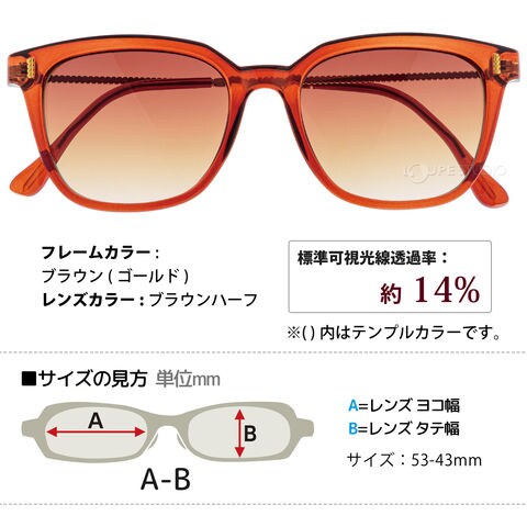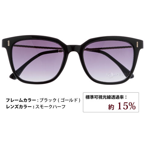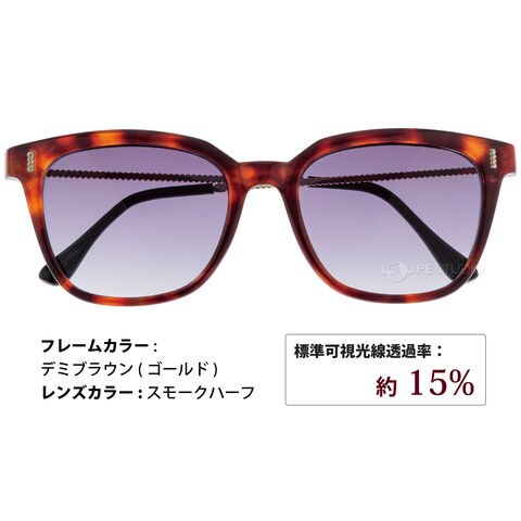 | フレーム/レンズカラー | ブラック(ゴールド)/スモークハーフ デミブラウン(ゴールド)/スモークハーフ ブラウン(ゴールド)/ブラウンハーフ ※( )内はテンプルカラーです。 |