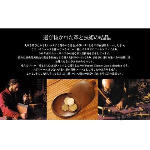 メガネケース 眼鏡 めがね ケース おしゃれ メンズ レディース 牛革 男性 女性 携帯 プレゼント ギフト 高級 サカエ F-400 PERONI COIN 革工芸 職人 ペローニ社 SAKAE コラボ品 ハンドメイド 手作り スペック