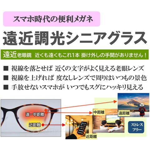 スマホ時代の便利メガネ 遠近調光シニアグラス