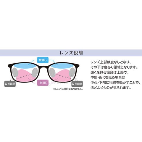 ご使用上の注意・遠近レンズの設計上、レンズ両側部に週さ範囲があり、その部分で見るとゆれ、歪みを感じます。