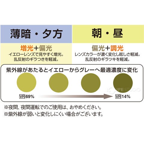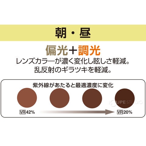 | カラー | ブラウン(偏光・調光) スモーク(偏光・調光) イエロースモーク(偏光機能・調光) |