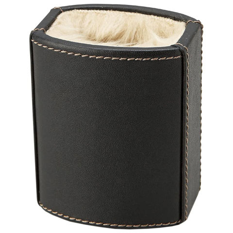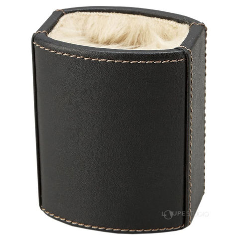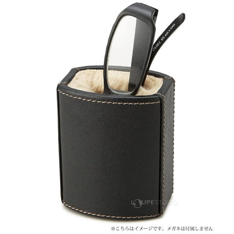 ブラック地にブラウンのステッチが映える、シンプルで実用性の高いシリーズ。内側にファーが付いているメガネスタンド。メガネを傷から守りつつ、手軽に収納。