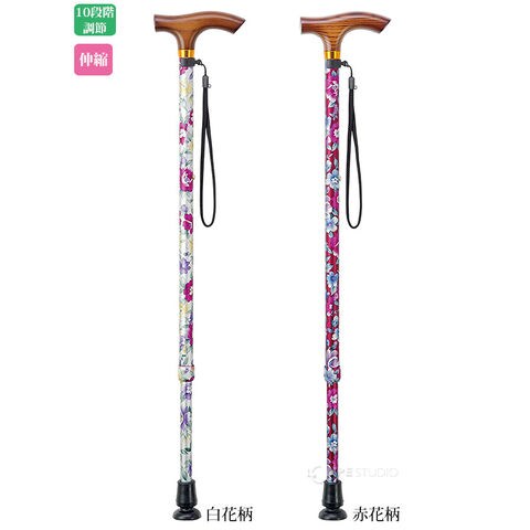 杖 アルミ あなたの相棒II 花柄ステッキ 伸縮 おしゃれ 軽量 女性 ステッキ 歩行 つえ 介護 高齢者 スペック