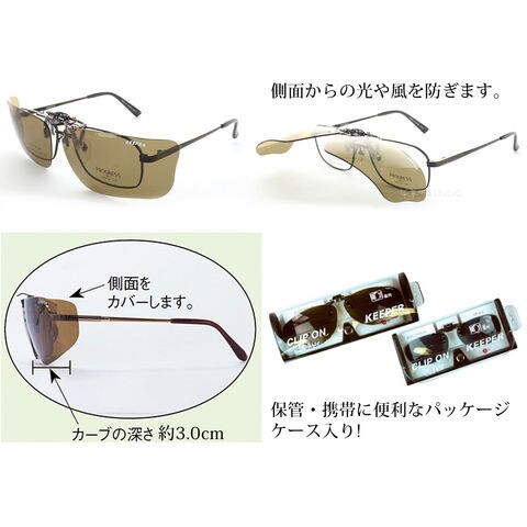 メガネの上からサングラス ゴルフ 釣り クリップサングラス ドライブ 偏光サングラス 跳ね上げ キーパーサイドカバー はね上げ 二眼 日本製