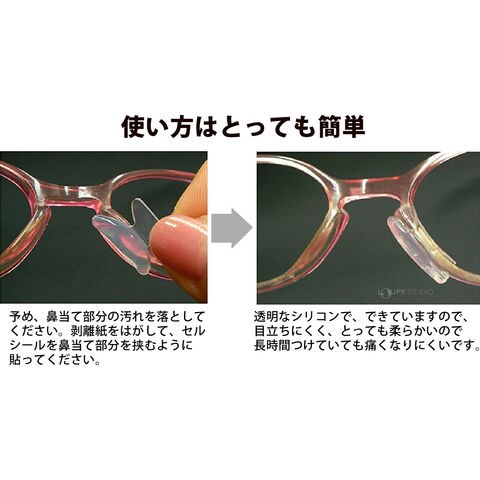 鼻を高くしたいとき:フレームの鼻当て部をか?はさむように貼ると長持ちします。