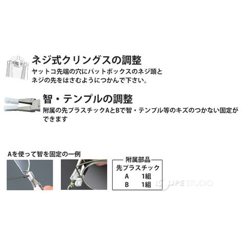 パット調節からヨロイ・テンプルまでフィッティングの多目的なヤットコ