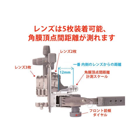 パッドは前後に5mm動きます。 - 検眼レンズは5枚掛け