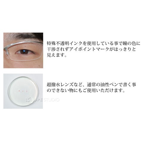 あらゆるコーティングレンズ対応マーカーペン。アイポイント、レンズメーターの印点、加工、測定の印点が特殊インクによりハッリと認識できます。