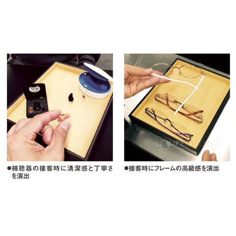 接客トレー 合皮 ダークブラウン ベージュ 検眼 メガネ 眼鏡 補聴器 時計 宝石 アクセサリー 眼鏡屋 眼鏡店 スペック