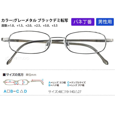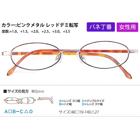 | 仕様 | バネ丁番、非球面プラスチックレンズ、テンプル調整不可 |