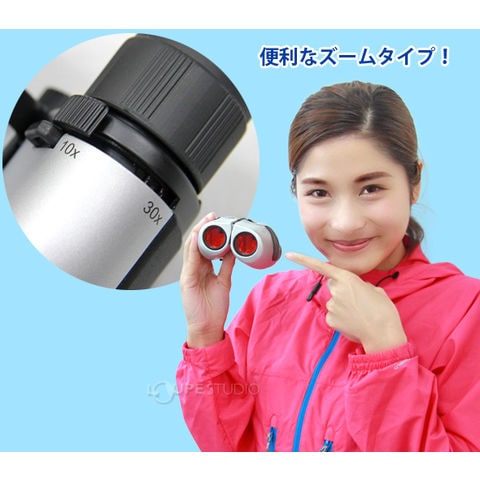 感動の瞬間を逃さず捕らえる10-30倍高性能ズームワンタッチ操作。 持ち運びに便利な軽量・小型ZOOM双眼鏡。ワンタッチ操作で様々なズーミングを楽しめます。おしゃれで洗練されたボディーはシルバーとブラックの絶妙なカップリング。