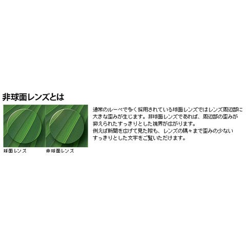 - 歪みの少ない非球面レンズ採用・・・目とレンズの適正距離を守ってご使用ください
