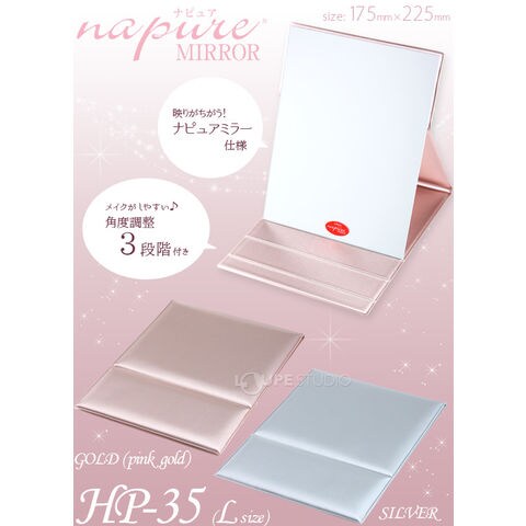 折立ミラー L HP-35 ナピュアミラー プロモデル メタリックバージョン 鏡 かがみ 卓上鏡 スタンドミラー 特許 毛穴 シミ シワ メイク プロ仕様 クリスマスプレゼント クリスマススペック