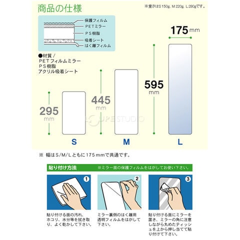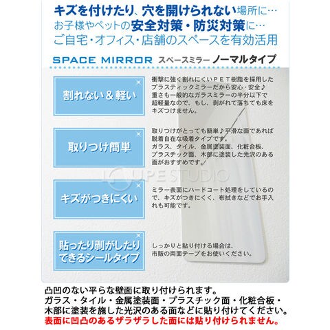 割れない鏡 ミラー 安心・安全 フィルム・シールタイプ スペースミラー ノーマルタイプL SM-03 ステッカーミラー ウォールミラー 鏡 姿見 シール 貼れる 剥がせるスペック