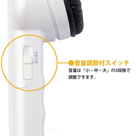 集音マイクで捉えた音や雑音が増幅し、大音量で耳に伝わることを防ぐ「騒音抑制機能付」付き!搭載されている回路部品で、使用時に大音量の音をノイズとして判断・カットして目的の音声(人間の肉声)のみを耳に伝える工夫をしています。