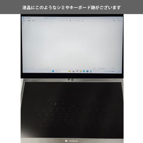 | 内観にテカリ、小キズ、キーに文字かすれがございます 液晶にキーボード跡、シミ、フレームにヒビ割れがございます |