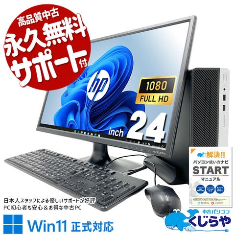 デスクトップパソコン 中古 Office付き Windows11 Pro HP ProDesk 400 G5 SFF Corei5 16GB 24型 中古パソコン